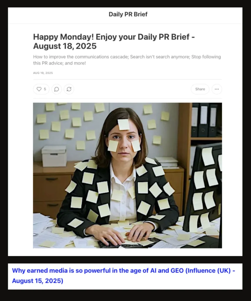 Substack newsletter Daily PR Brief also included the INFLUENCE piece in their daily round-up of curated PR and communications news.👇